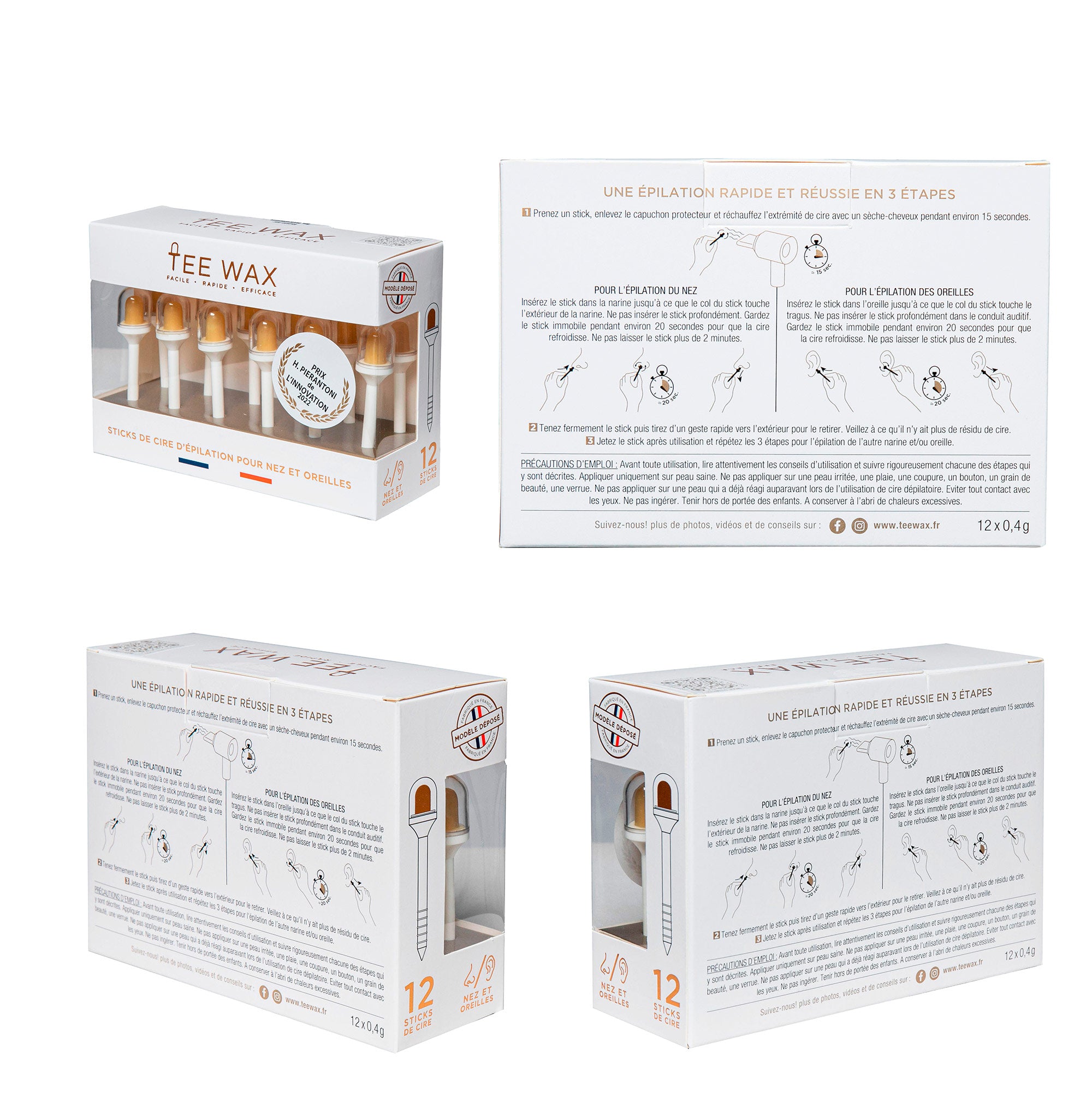 TEE WAX ce sont des sticks de cire prêts à l’emploi avec la quantité suffisante pour une épilation du nez et/ou des oreilles. Ils ont été spécialement conçus pour cibler le poil que vous souhaitez enlever et épiler uniquement les poils visibles sans toucher ceux indispensables à la régulation et à la protection.